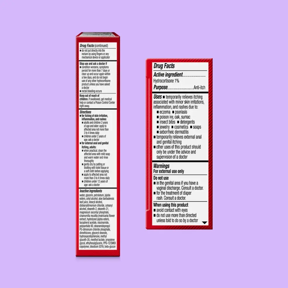 Active Ingredient - Hydrocortisone 1%